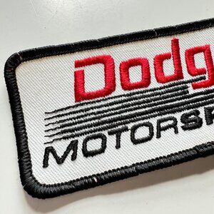 Vintage Dodge Motorsports racing patch in black, red and white. Rectangle shaped, embroidered, good condition. Measures approx 5" long x 2" tall.