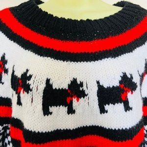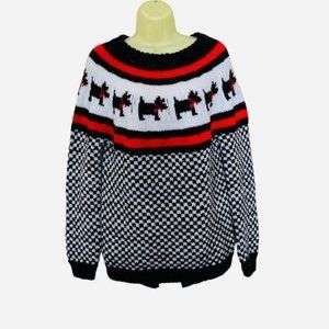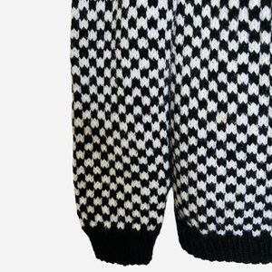 Vintage Dog Fair isle Icelandic-Chunky-hand-knitted Black white Winter-Fisherman Sweater Large. Excellent Pre-loved Condition. Heavy knit material. Long sleeve crew neck style. Great sweater to layer within cool weather. Armpit to armpit 19” Length 24” Please check the pictures. Fast shipping.