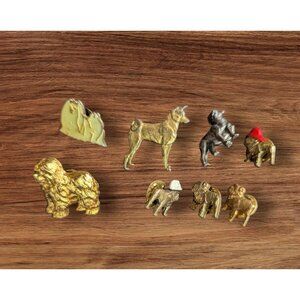 Vintage Dog Lapel Pin Set Metal Collectibles Bulldog Shih Tzu Shepherd Designs
