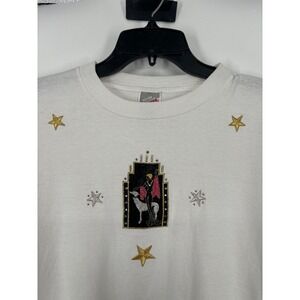 Vintage Dog T Shirt Size Large White Studded Embroidered Sparkle Made In USA