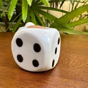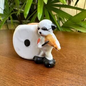 Vintage Dog with Violin Dice Pin Cushion Ceramic Made in Japan