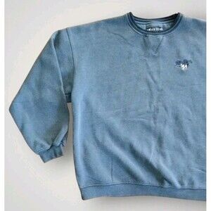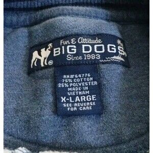 This Vintage Dogs Men's Sweatshirt in Blue, Size XL, is a cozy and stylish addition to any man's wardrobe. Made from a blend of polyester and cotton, this fleece fabric sweatshirt features an embroidered logo from the brand Big Dogs. The pullover style and breathable material make it perfect for casual wear or walking activities. With its solid color and dog-themed design, this vintage sweatshirt is a fun and unique choice for men who appreciate both comfort and style.