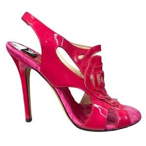 Vintage Dolce & Gabbana Patent Leather Pink Rose Open Toe Heels Size 40 US 10