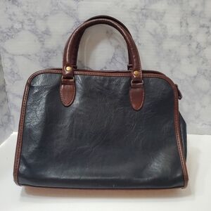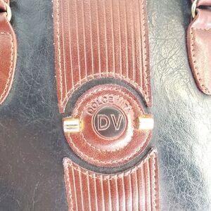 Vintage Dolce Vita Handbag Black Brown Leather Pockets Zip Closure