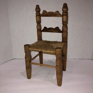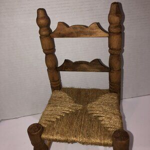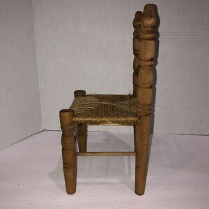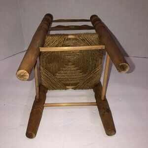 Vintage Doll Bear Miniature Wooden Chair Twine Jute Seat 12" Tall Primitive