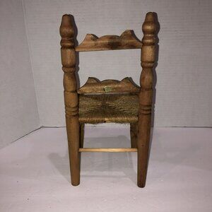 Vintage Doll Bear Miniature Wooden Chair Twine Jute Seat Tall Primitive