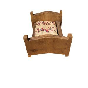 Vintage Doll Bed Wooden Primitive 10"x7"x4.5" Handmade Dollhouse Furniture Rusti