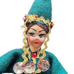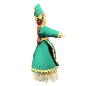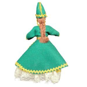 Vintage Doll Cultural Hand-Painted Face Felt Clothing Green Dress 8” Height