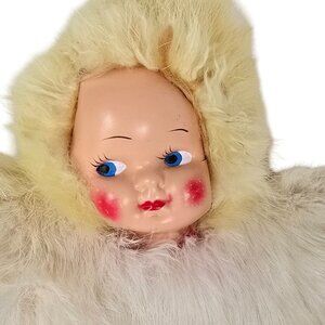 Vintage Doll Face Hand Muff Real Rabbit Fur Rubber Face 1950s Girls Winter Retro