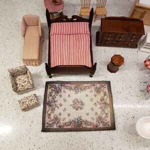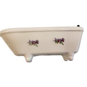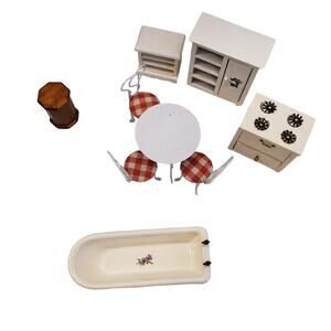 Vintage Doll House Furniture Porcelain Bath Tub Wooden 4 Poster Bed