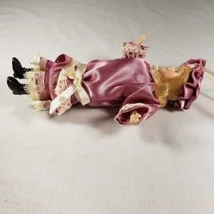 Vintage Doll Style Christmas Ornament Girl In Pink Dress Blonde Hair Flower Hat