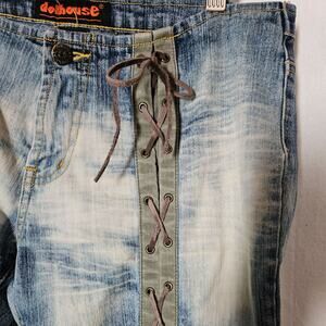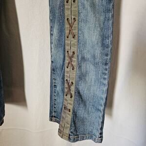 Vintage Dollhouse Lace-up Distressed Bootcut Low-Rise Jeans 34' Waist No Size
