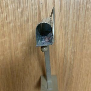 Vintage Dollhouse Mailbox Metal Miniature Handcrafted W/ Heart Decor Garden Cute. This listing is for a vintage miniature mailbox for a dollhouse. It is made of metal and is a beige color. It is handmade / handcrafted. There is a heart drawn on one side with, “welcome home” faintly written on it. It looks like something used to be glued inside, but now there is just leftover glue in there. This item is about 3 inches tall laying flat. There are scratches on the metal throughout from age. This item is in FAIR pre-owned condition. Thanks!