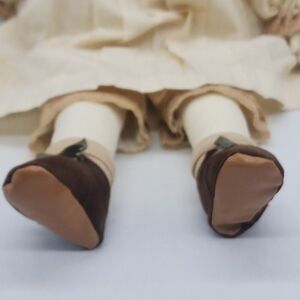 This vintage doll by Pauline Bjonness Jacobsen is a unique addition to any collection. With blonde hair, blue eyes, and a light complexion, this 21-inch Caucasian girl doll is made of cloth and is in great condition. It comes with a red outfit and is perfect for children aged 5-7 years old. The doll is not signed and is sold as a single unit, making it a one-of-a-kind piece without any custom bundle or personalization options.