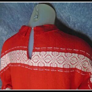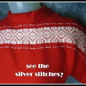 Vintage Dolman Top Red White with Silver, Festive 50s Holiday Woven Cotton VFG