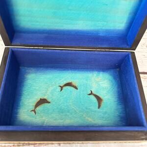 Dolphin in Ocean Decorated Polished Jewelry Keepsake Trinket Box