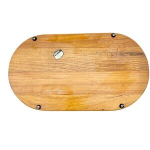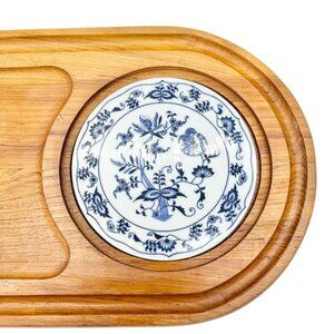 Once upon a time, this elegant serving tray graced tables with its warm teakwood charm and intricate ceramic plate. A timeless piece for cherished gatherings.