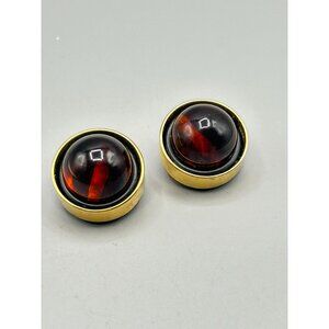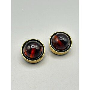 These vintage earrings showcase a striking bakelite dome set in a gold-tone finish. Their clip-on design provides ease of wear without the need for pierced ears.