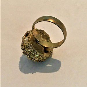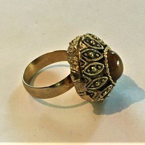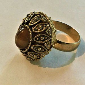 Vintage Dome TIGER EYE Gold Plated Adjustable POISON RING Locket Pillbox Ring