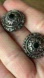 Vintage Domed Button Earrings – Silver Tone Scrollwork with Black Cabochon