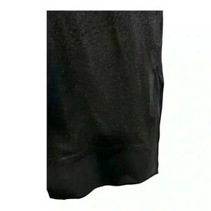 This vintage Domina black sweater dress is a classic blend of elegance and comfort, featuring a soft velvet trim along the edges for added sophistication. The dress includes a lightweight black slip underneath, which adds structure and depth to the sheer lower hem for a subtle layered effect. The relaxed fit, sleeveless design, and versatile length make it ideal for various occasions. Estimated size: Large to XL based on measurements.
