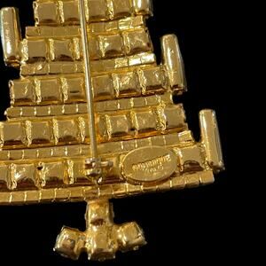 Vintage Dominique Candle Christmas Tree Brooch Pin Rhinestone Jewelry Signed