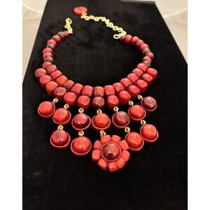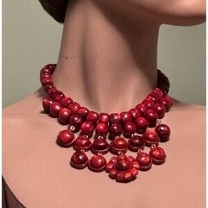 Vintage Dominique Denaive Paris Cranberry Red Resin Choker/Bib NECKLACE