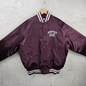 Vintage Don Alleson Bomber Jacket XL Maroon Satin Quilted Lining Antelope Valley