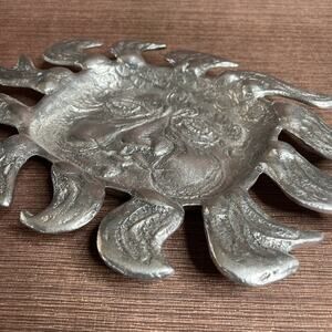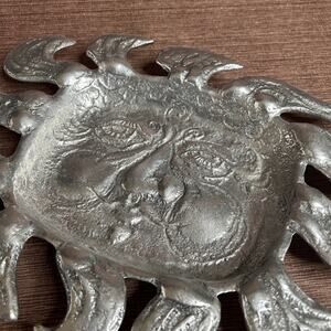 don drumm platter, aluminum sun face, brutalist wall art, celestial decor, signed metal art, 1990s sculpture, vintage aluminum tray, sun motif platter, midcentury artist, akron ohio studio, cast metal decor, don drumm signed, abstract sun face piece
