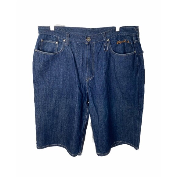Vintage Don Men’s Shorts Blue Denim and Yellow Embroidered 5 Pocket Size 40