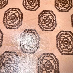 NWOT Vintage Don Quixote Brown Leather Satchel Purse w/Gold Trim Top Zipper Closure. Cognac in the front and darker brown in the back. Leather handles. Patterned lining
