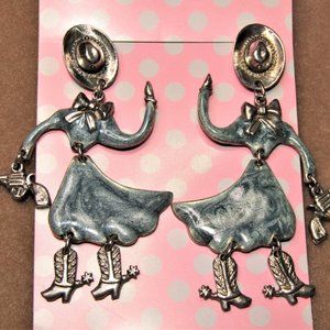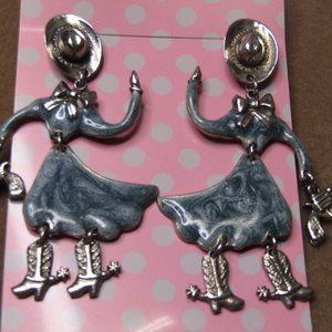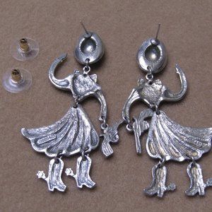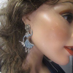 Blue enamel and Silver Articulated Cowgirl Earrings, Post Back for pierced ears, Vintage Signed Don-Lin Enamel Cowgirl Jointed Dangle Pierced Earrings 1980's. Don-Lin jewelry was founded by Donald and Linda St. Angelo in Providence Rhode Island in 1972. There jewelry was produced in limited quantity.