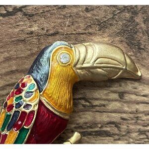 Vintage Don-Lin Toucan Brooch Gold Tone Colorful Enamel Rhinestone Bird Pin