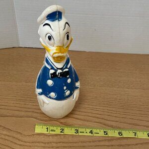 This vintage Donald Duck bowling set features six pins and a ball.