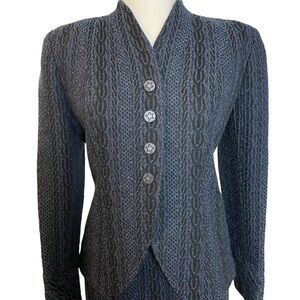 Vintage Doncaster Blue and Black Raised Pattern Blazer and Skirt Set Sz.4P