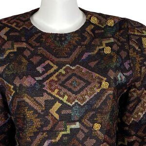 Vintage Doncaster Tapestry Cropped Jacket Size 8 Gold Button Detailing Snap Up