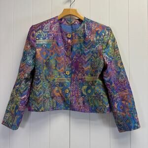 Vintage Doncaster Womens Whimsical Dopamine Glam Cropped Jacket Size S/M Gold