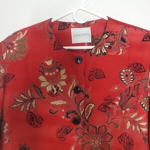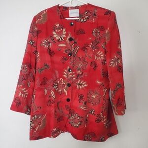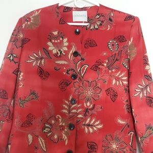 Vintage Doncaster Womens Wool Blend Blazer Jacket Size 14 Red Hue Boho Floral