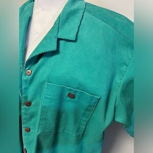 Vintage DonnKenny Corduroy Teal Button Up Dress and/or Duster Jacket. Truly vintage in excellent condition