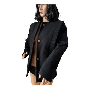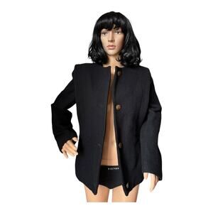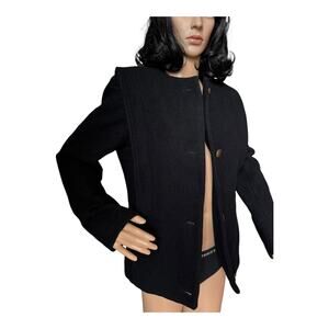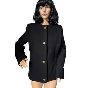 Vintage Donna Frederlcks black no collar 4 gold button Coat size small *