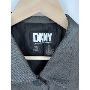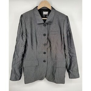 Vintage Donna Karan Blazer Jacket Black Grey Button High Collar Size 12