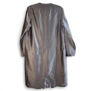 Vintage Donna Karan New York 100% Silk Open Duster Over Coat in Silver Gunmetal Gray size Small