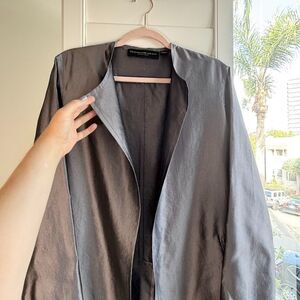 Vintage Donna Karan New York 100% Silk Open Duster Coat in Silver Gray size S