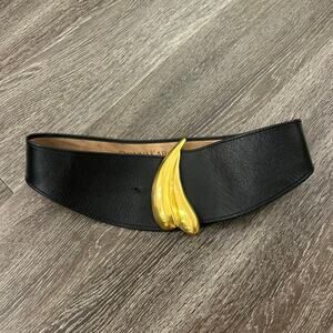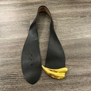 Vintage Donna Karan New York Black Leather Waist Belt Med Gold Sculptural Buckle