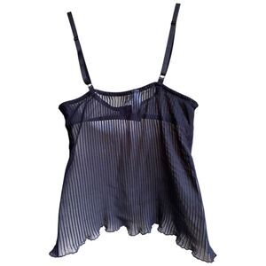 Bra-babydoll top hybrid with built-in support (34C cup) and flowing pleated chiffon overlay.