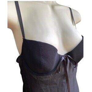 Vintage Donna L'oren Babydoll Bra Top 34C Black Pleated Chiffon Coquette flirty