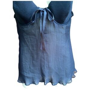 Vtg Donna L'oren Babydoll Bra Top 34C Black Pleated Chiffon Adjustable Straps