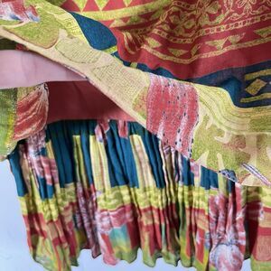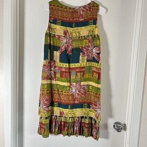 Vintage Donna Morgan Dress Linen Blend Siz 4 Floral Artsy Retro Y2K Pleated