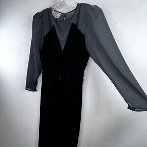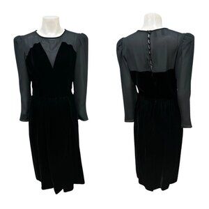 Vintage Donna Morgan Non Stop Velvet Dress Black 7/8 Union Label USA Sheer Goth