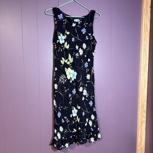 vintage, donna ricco, floral dress, 8P, petite, midi dress, 90s fashion, y2k style, ruffle hem, romantic, garden party, feminine, classic, sleeveless